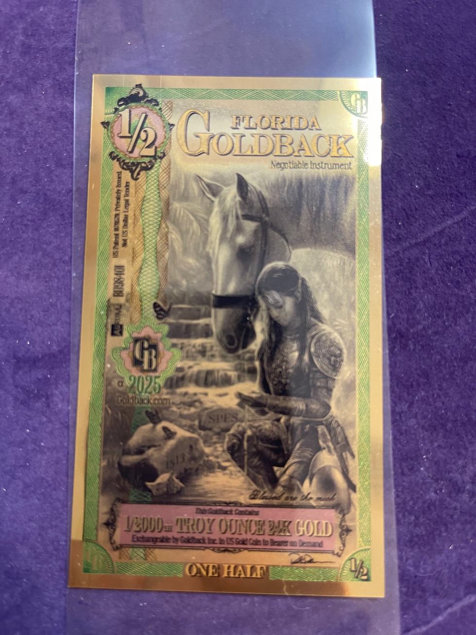 1/2 OKLAHOMA Goldback Aurum Gold Foil Note 1/2000 oz 24kt .999 Fine